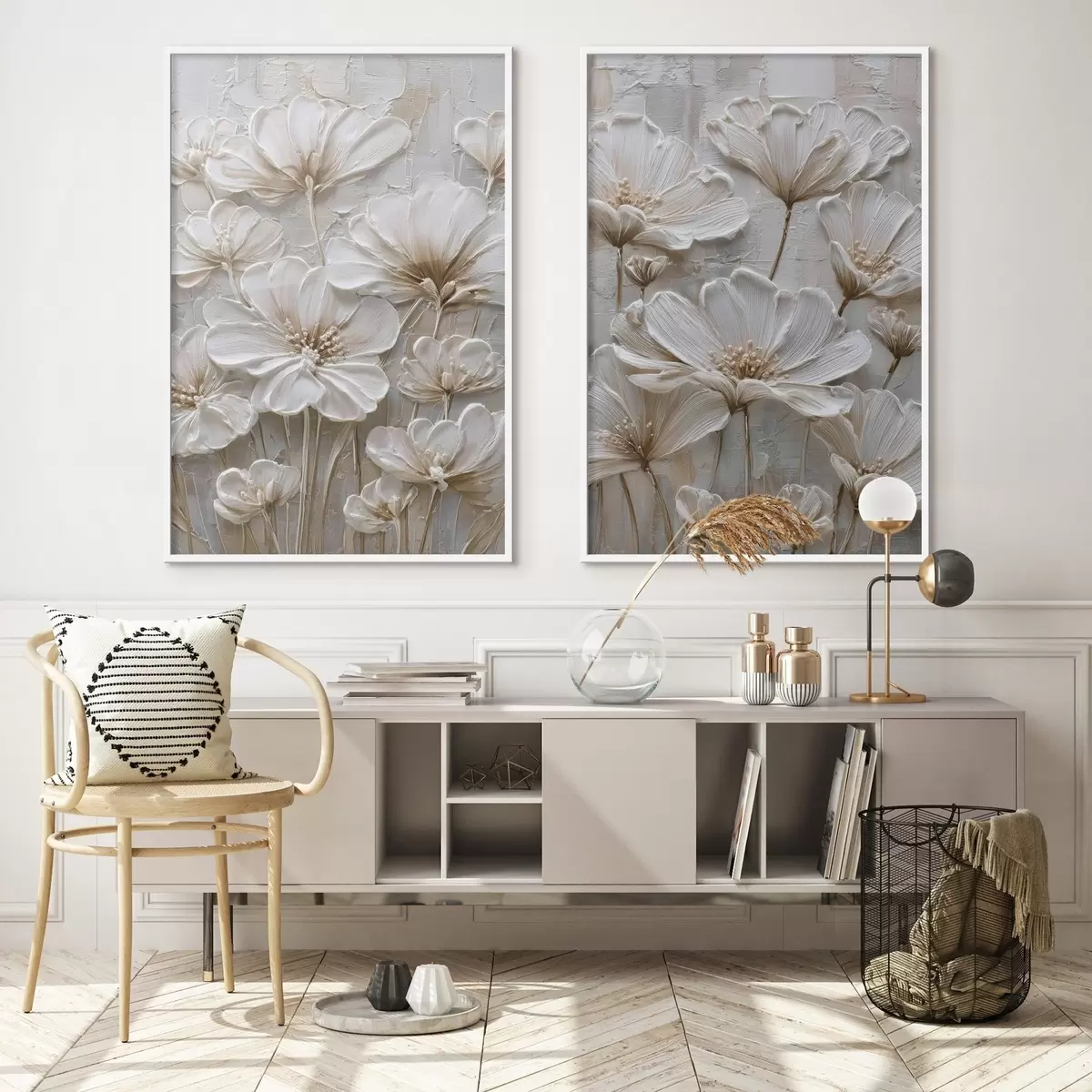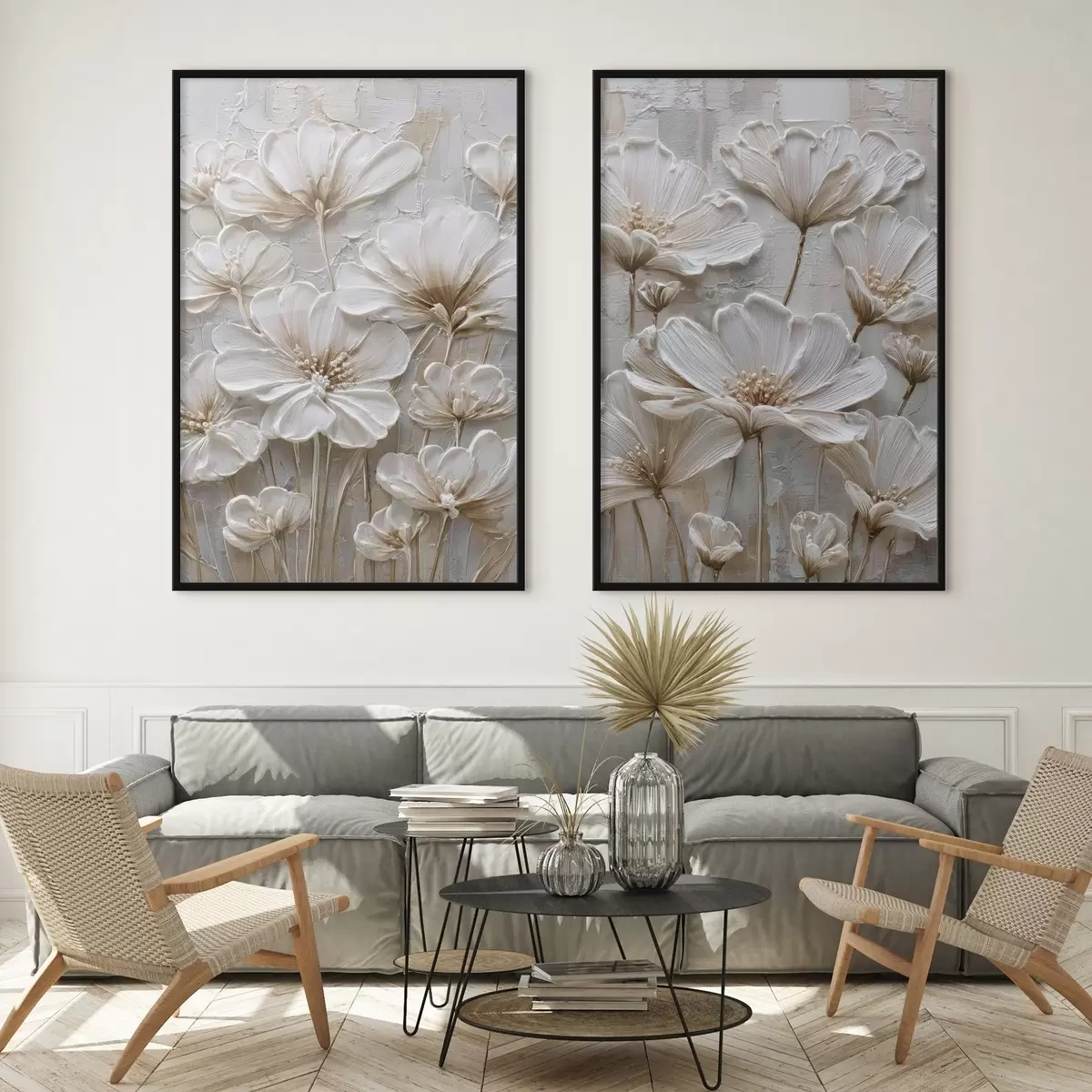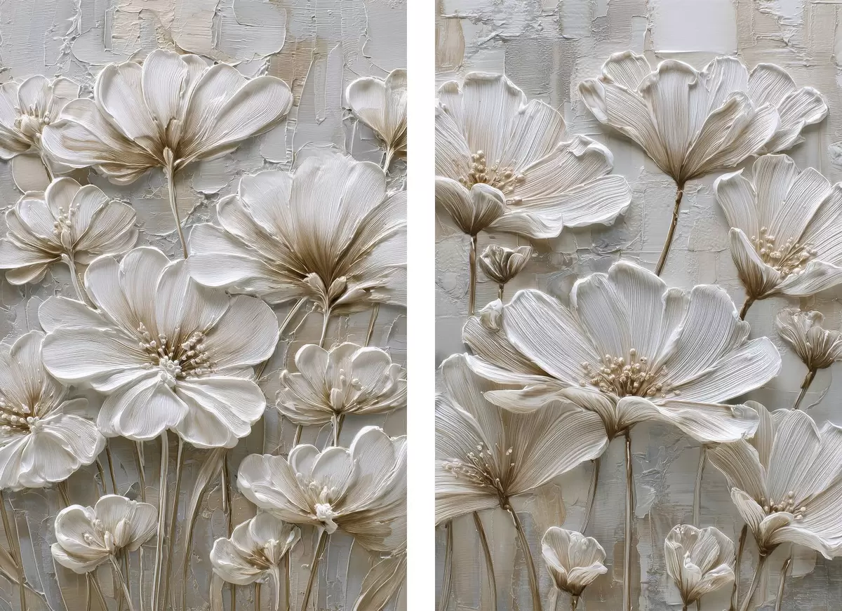 Poster krémes virágok imitált impasto stílusban Nr d00701