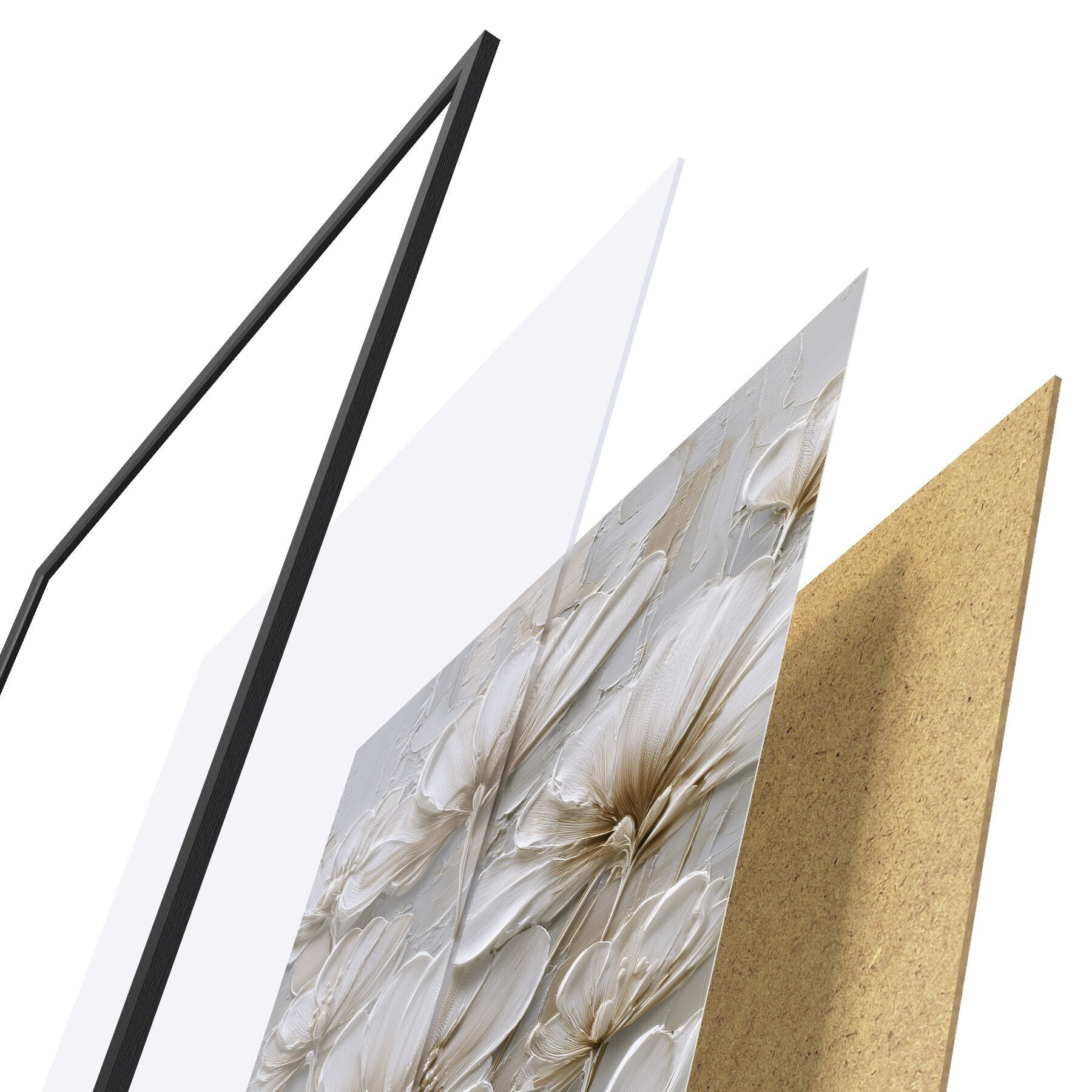 A poszter keretből, plexiből, nyomtatott képből és forgácslap hátlapból áll. A poszter a hátoldalon található rögzítőknek köszönhetően azonnal felakasztható a falra.