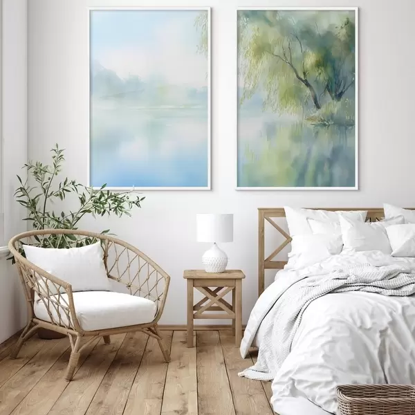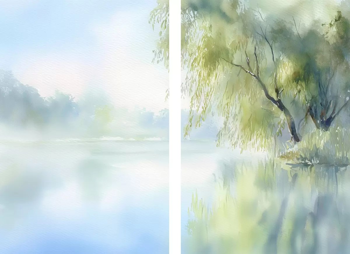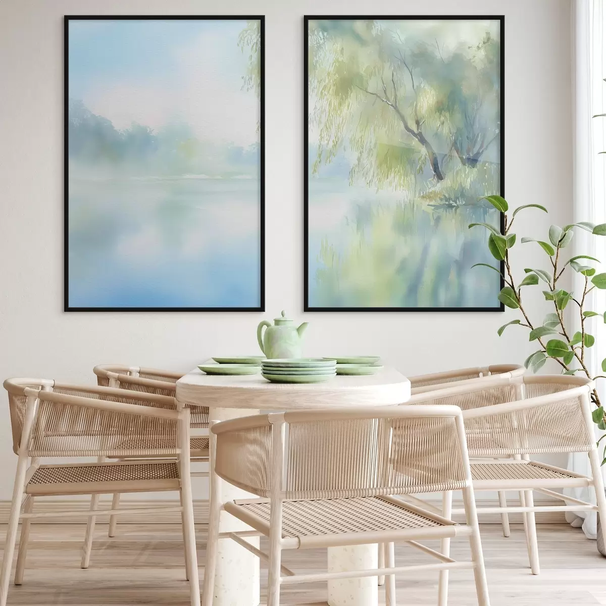 Poster vízfesték stílusú fűzfa a tó partján Nr d00702