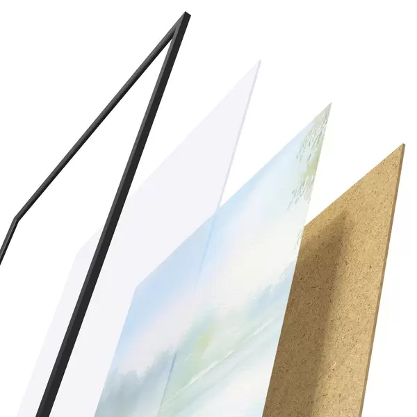 A poszter keretből, plexiből, nyomtatott képből és forgácslap hátlapból áll. A poszter a hátoldalon található rögzítőknek köszönhetően azonnal felakasztható a falra.