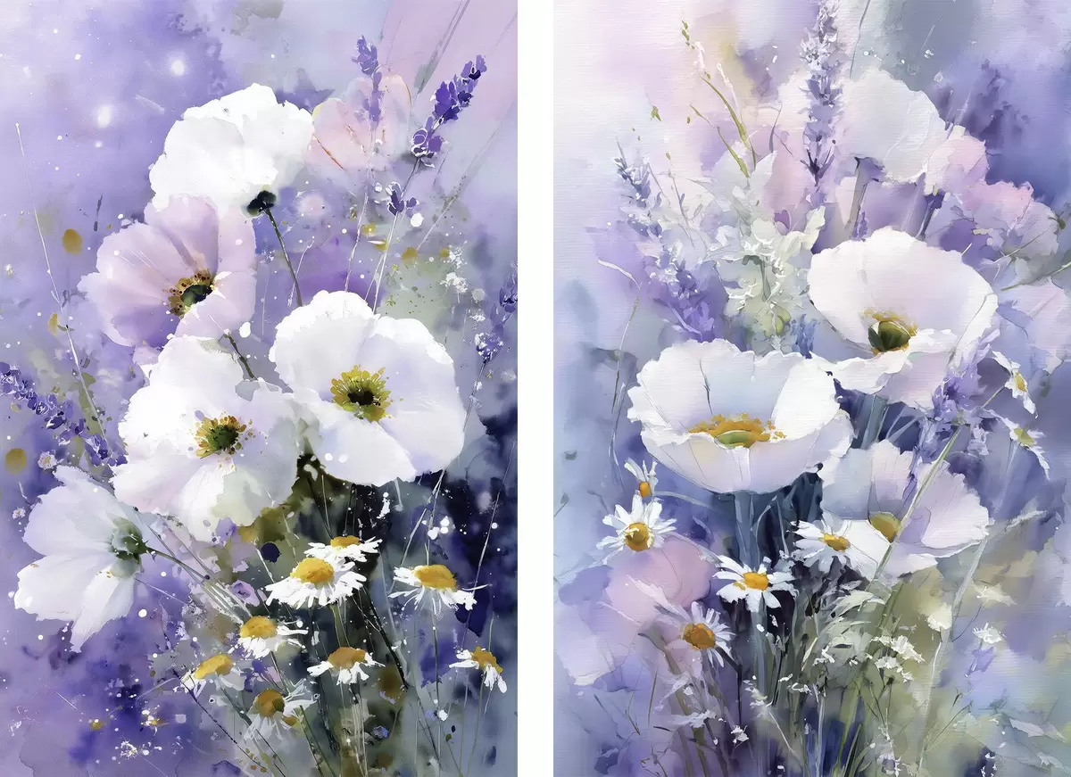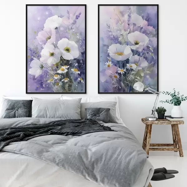 Poster akvarell csokor lila és fehér árnyalatokban Nr d00704