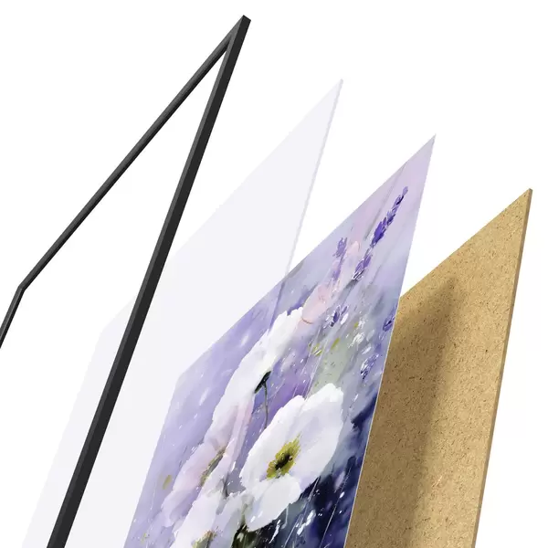 A poszter keretből, plexiből, nyomtatott képből és forgácslap hátlapból áll. A poszter a hátoldalon található rögzítőknek köszönhetően azonnal felakasztható a falra.