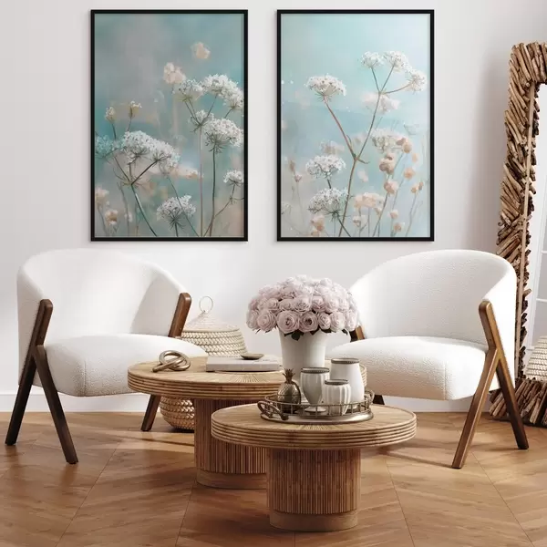 Poster Kék háttér előtt akvarell stílusban festett királynő Anne csipkevirágok Nr d00705