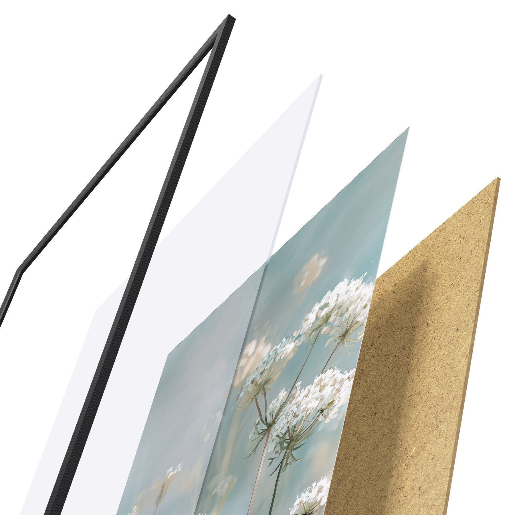 A poszter keretből, plexiből, nyomtatott képből és forgácslap hátlapból áll. A poszter a hátoldalon található rögzítőknek köszönhetően azonnal felakasztható a falra.