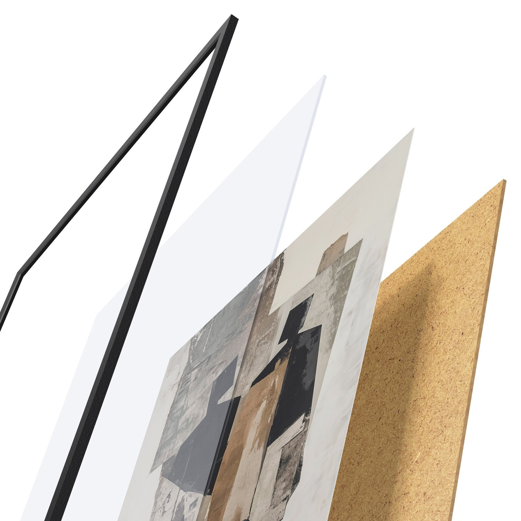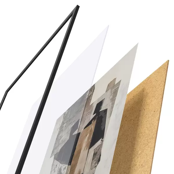 A poszter keretből, plexiből, nyomtatott képből és forgácslap hátlapból áll. A poszter a hátoldalon található rögzítőknek köszönhetően azonnal felakasztható a falra.