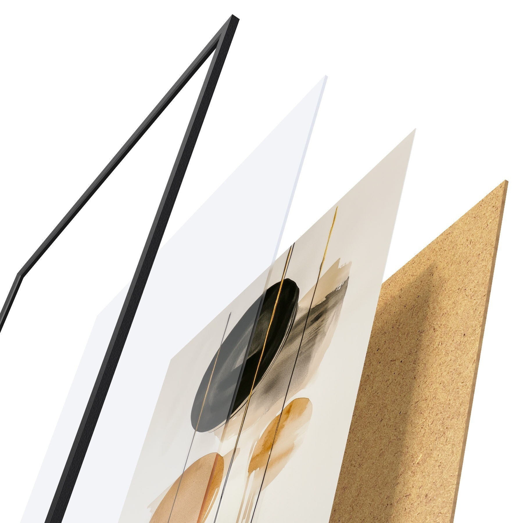 A poszter keretből, plexiből, nyomtatott képből és forgácslap hátlapból áll. A poszter a hátoldalon található rögzítőknek köszönhetően azonnal felakasztható a falra.