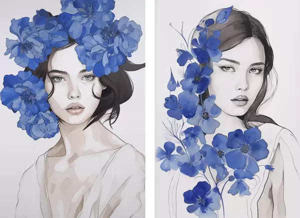 Poster Kék virágokkal díszített lányportré Nr d00721