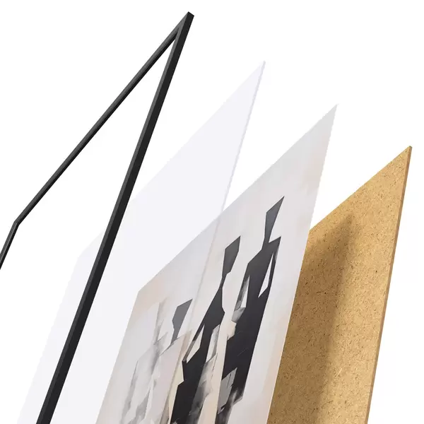 A poszter keretből, plexiből, nyomtatott képből és forgácslap hátlapból áll. A poszter a hátoldalon található rögzítőknek köszönhetően azonnal felakasztható a falra.