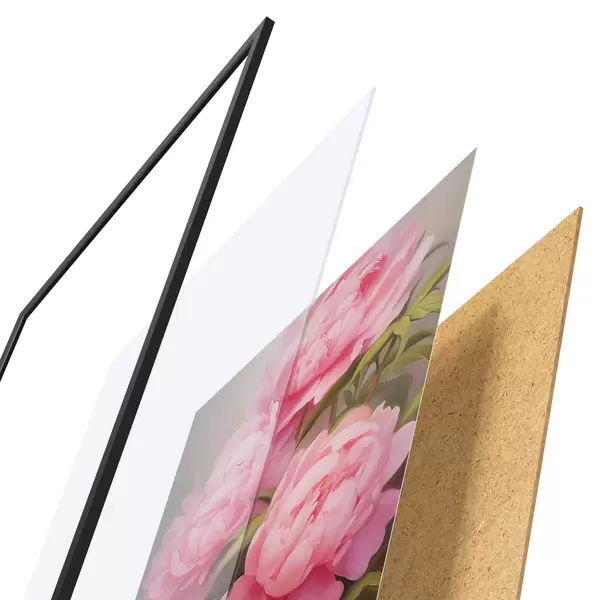 A poszter keretből, plexiből, nyomtatott képből és forgácslap hátlapból áll. A poszter a hátoldalon található rögzítőknek köszönhetően azonnal felakasztható a falra.