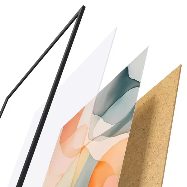 A poszter keretből, plexiből, nyomtatott képből és forgácslap hátlapból áll. A poszter a hátoldalon található rögzítőknek köszönhetően azonnal felakasztható a falra.