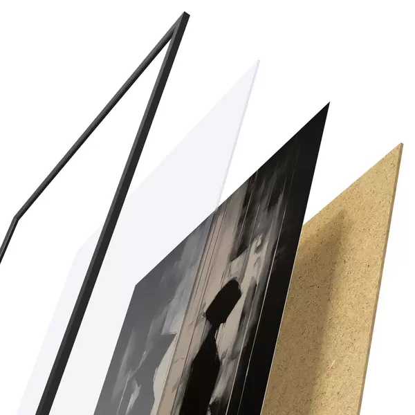 A poszter keretből, plexiből, nyomtatott képből és forgácslap hátlapból áll. A poszter a hátoldalon található rögzítőknek köszönhetően azonnal felakasztható a falra.