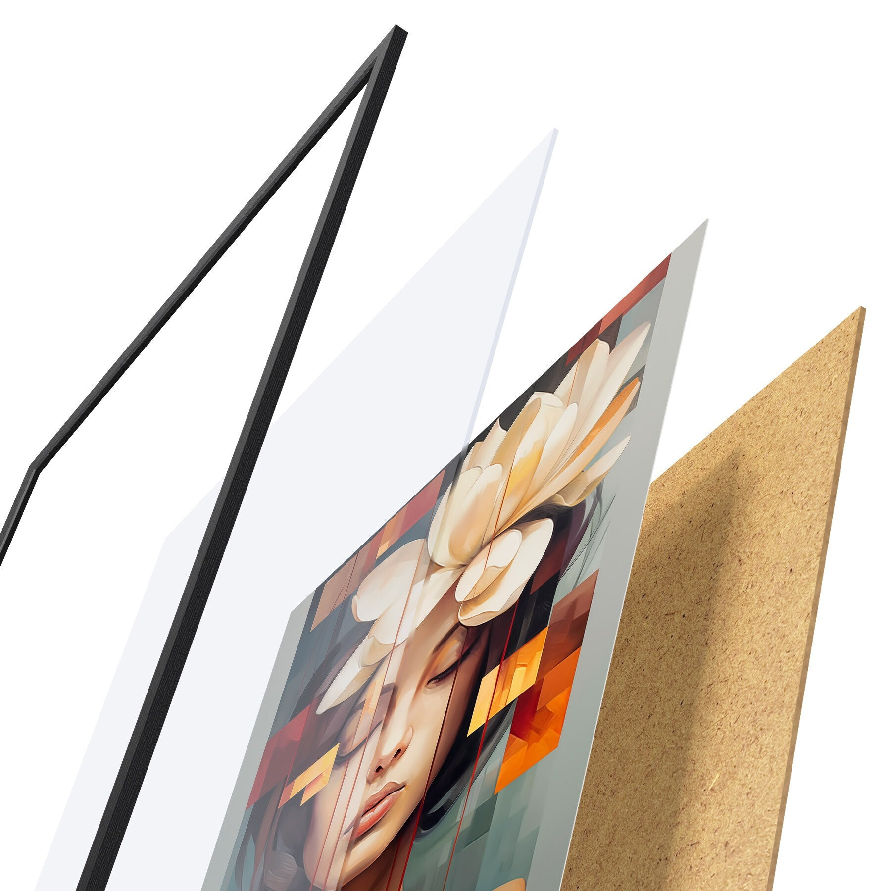 A poszter keretből, plexiből, nyomtatott képből és forgácslap hátlapból áll. A poszter a hátoldalon található rögzítőknek köszönhetően azonnal felakasztható a falra.