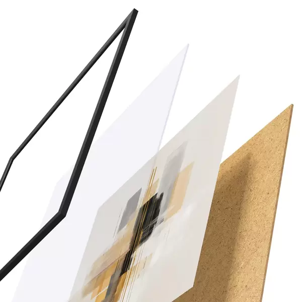A poszter keretből, plexiből, nyomtatott képből és forgácslap hátlapból áll. A poszter a hátoldalon található rögzítőknek köszönhetően azonnal felakasztható a falra.