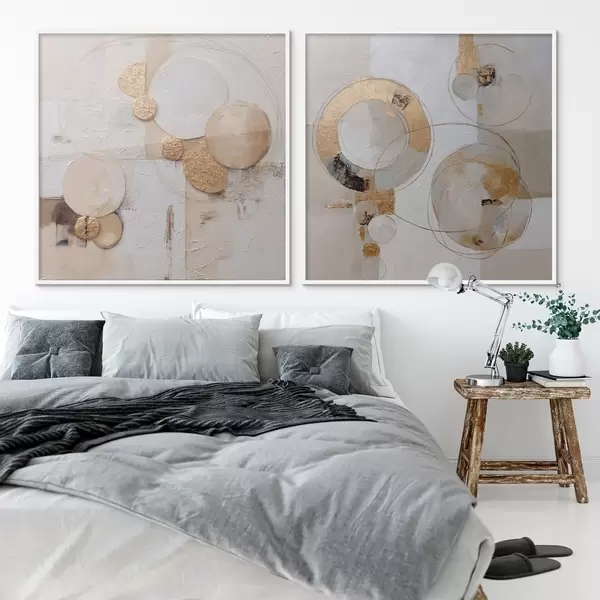 Plakát a sziklán Texturált festmény bézs és fehér formákkal d00741
