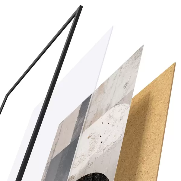 A poszter keretből, plexiből, nyomtatott képből és forgácslap hátlapból áll. A poszter a hátoldalon található rögzítőknek köszönhetően azonnal felakasztható a falra.