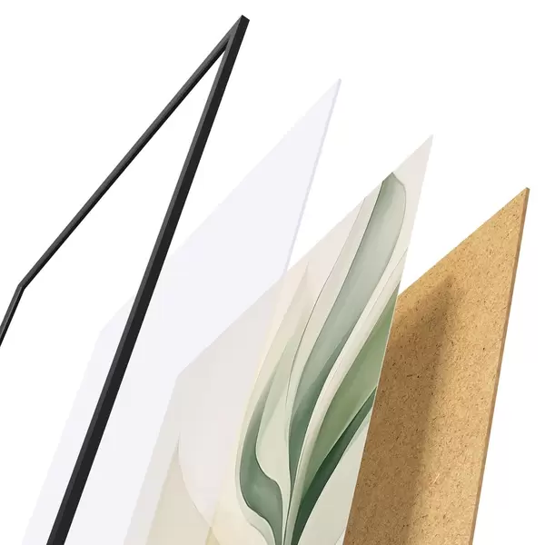 A poszter keretből, plexiből, nyomtatott képből és forgácslap hátlapból áll. A poszter a hátoldalon található rögzítőknek köszönhetően azonnal felakasztható a falra.