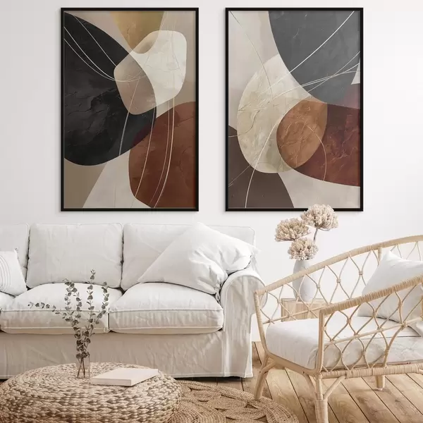 Poster Meleg színvilágú geometrikus ovális alakzatok sárga vonalakkal Nr d00763