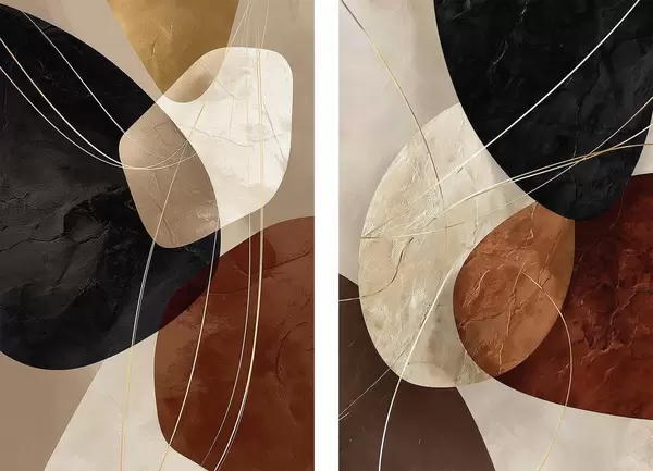 Poster Meleg színvilágú geometrikus ovális alakzatok sárga vonalakkal Nr d00763
