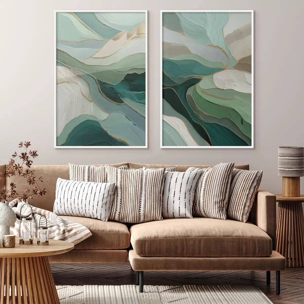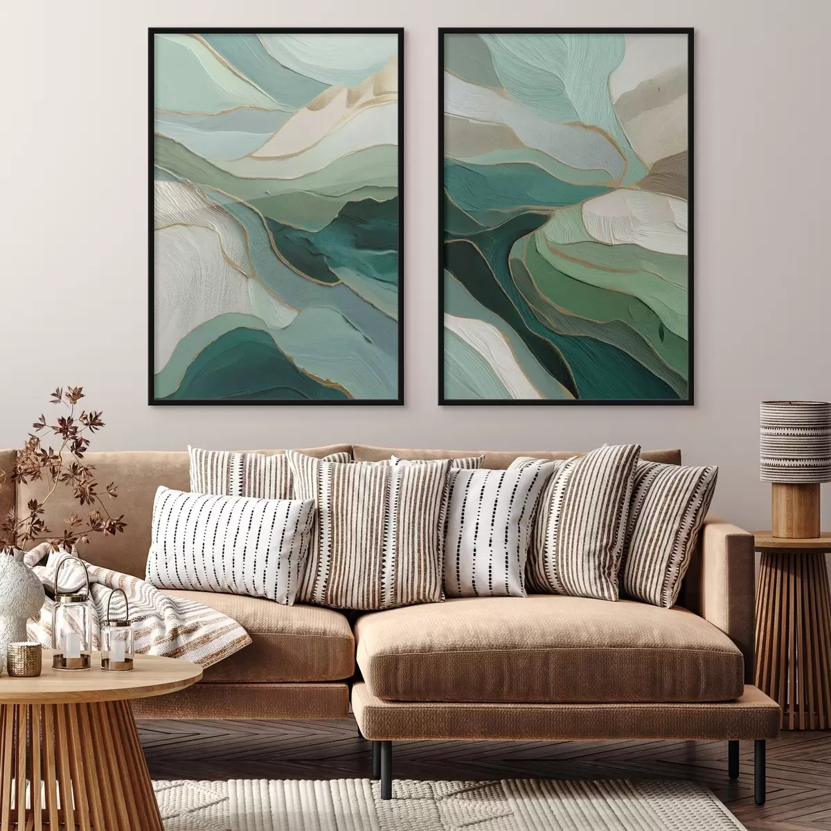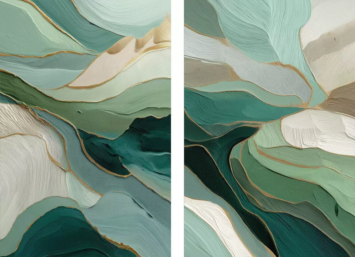Poster Smaragdszínű réteges absztrakció sárga kontúrral Nr d00766