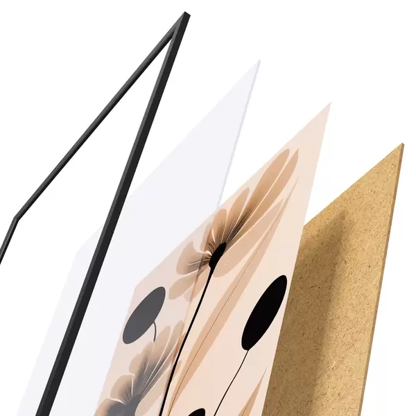 A poszter keretből, plexiből, nyomtatott képből és forgácslap hátlapból áll. A poszter a hátoldalon található rögzítőknek köszönhetően azonnal felakasztható a falra.