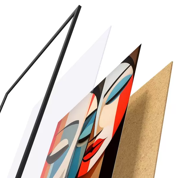 A poszter keretből, plexiből, nyomtatott képből és forgácslap hátlapból áll. A poszter a hátoldalon található rögzítőknek köszönhetően azonnal felakasztható a falra.