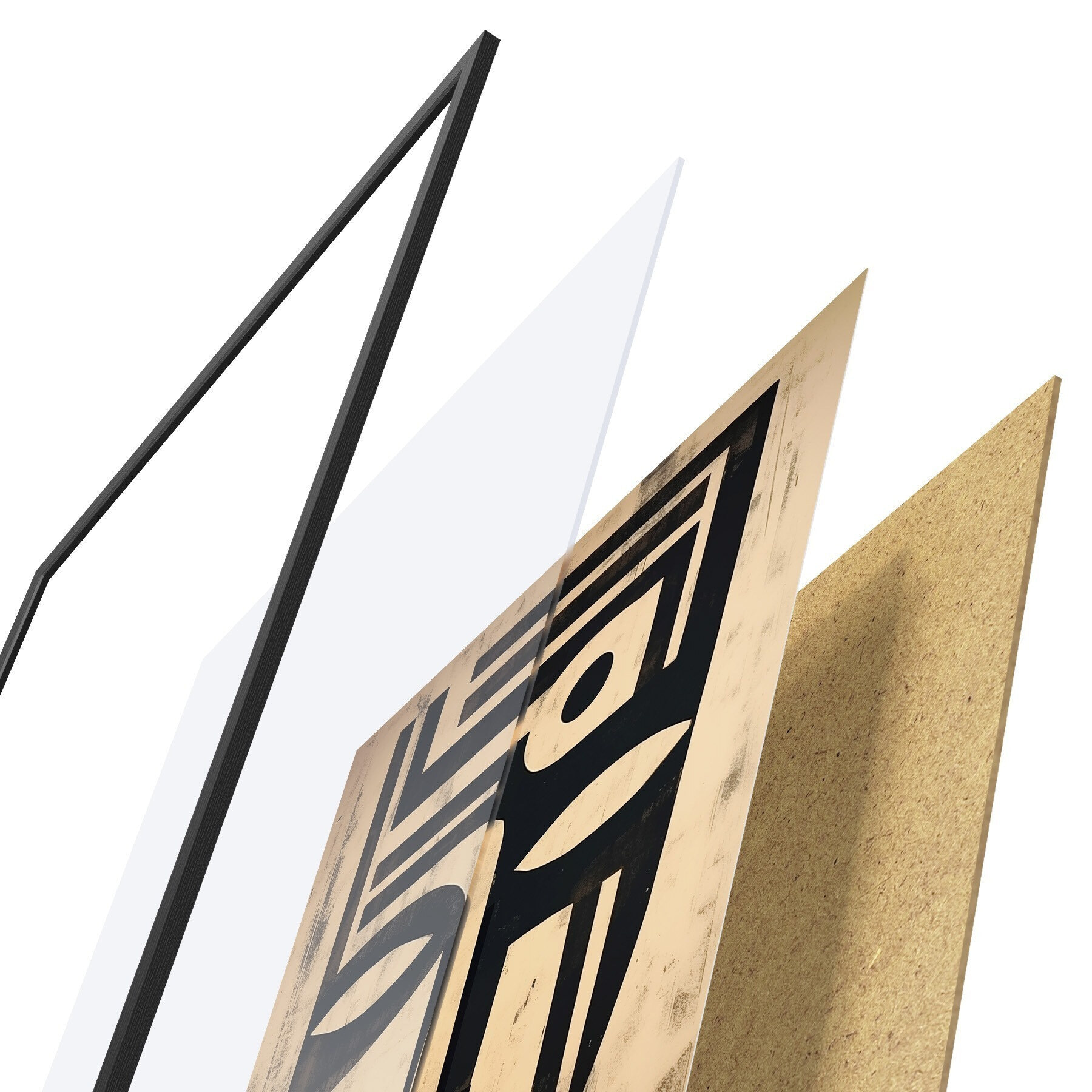 A poszter keretből, plexiből, nyomtatott képből és forgácslap hátlapból áll. A poszter a hátoldalon található rögzítőknek köszönhetően azonnal felakasztható a falra.