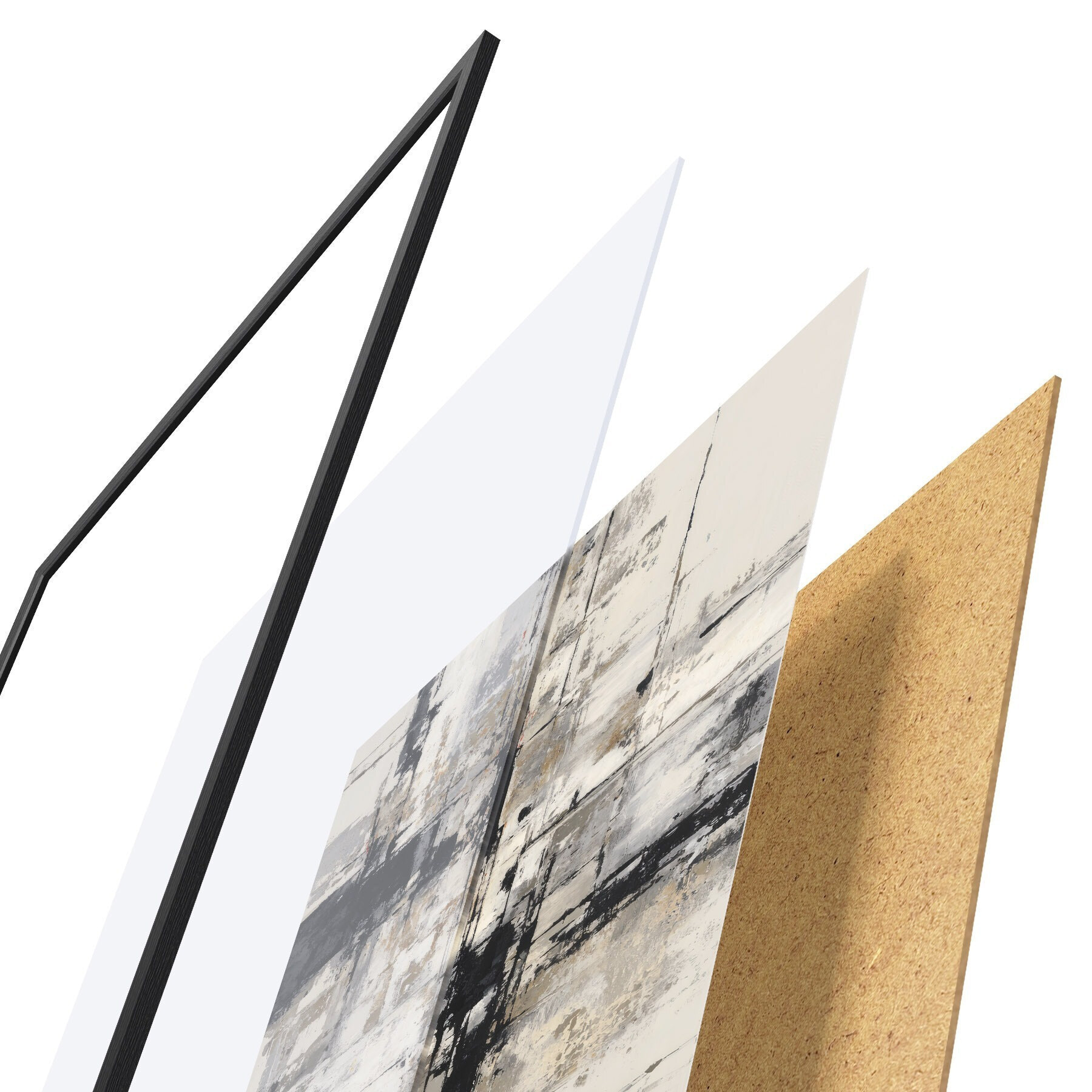 A poszter keretből, plexiből, nyomtatott képből és forgácslap hátlapból áll. A poszter a hátoldalon található rögzítőknek köszönhetően azonnal felakasztható a falra.