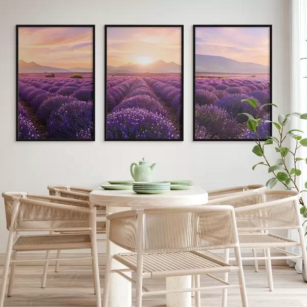 Plakát a sziklán Naplemente egy levendula mezőn d00785