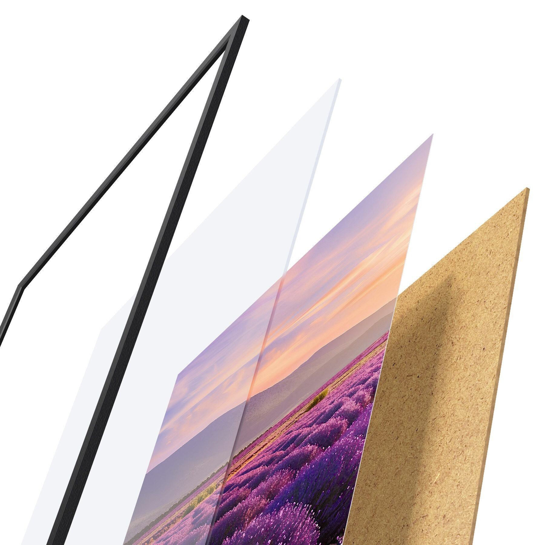 A poszter keretből, plexiből, nyomtatott képből és forgácslap hátlapból áll. A poszter a hátoldalon található rögzítőknek köszönhetően azonnal felakasztható a falra.