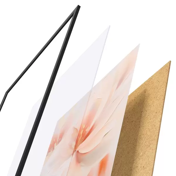 A poszter keretből, plexiből, nyomtatott képből és forgácslap hátlapból áll. A poszter a hátoldalon található rögzítőknek köszönhetően azonnal felakasztható a falra.