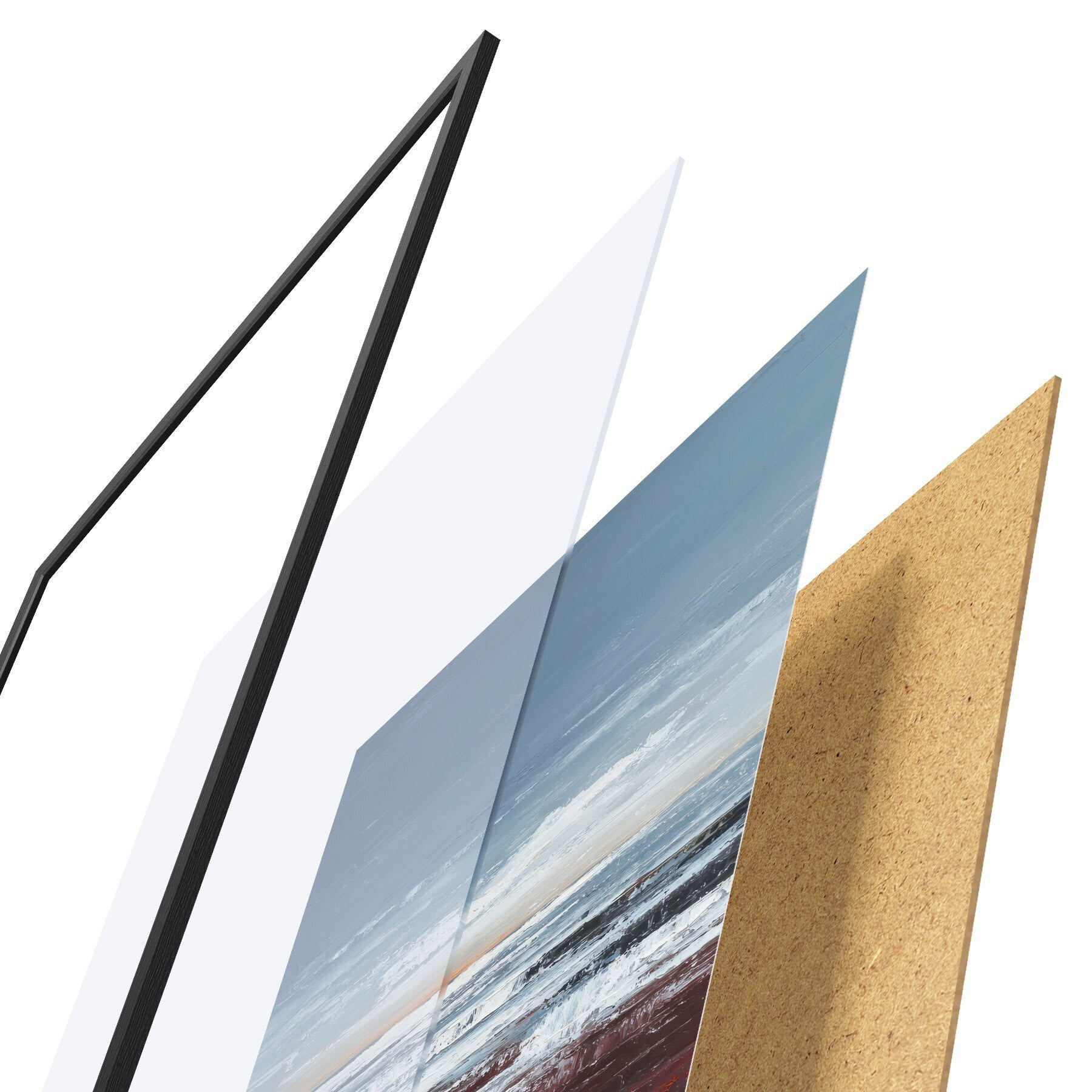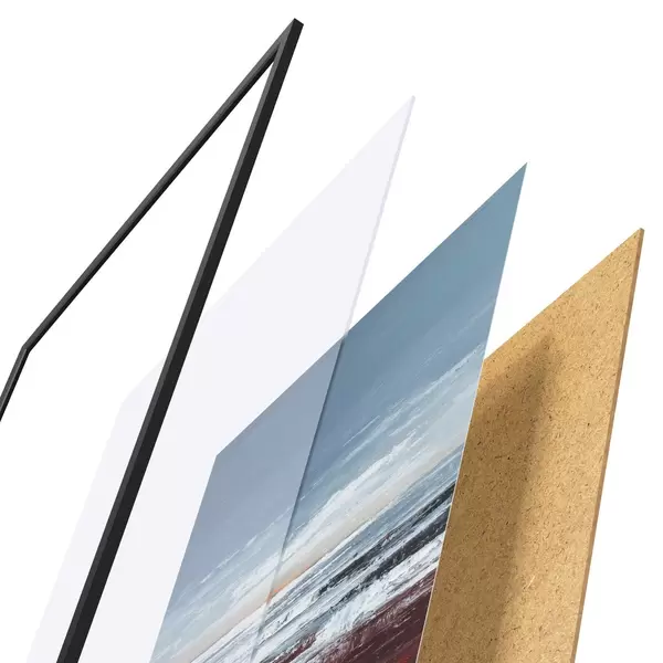 A poszter keretből, plexiből, nyomtatott képből és forgácslap hátlapból áll. A poszter a hátoldalon található rögzítőknek köszönhetően azonnal felakasztható a falra.