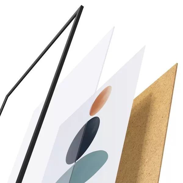 A poszter keretből, plexiből, nyomtatott képből és forgácslap hátlapból áll. A poszter a hátoldalon található rögzítőknek köszönhetően azonnal felakasztható a falra.