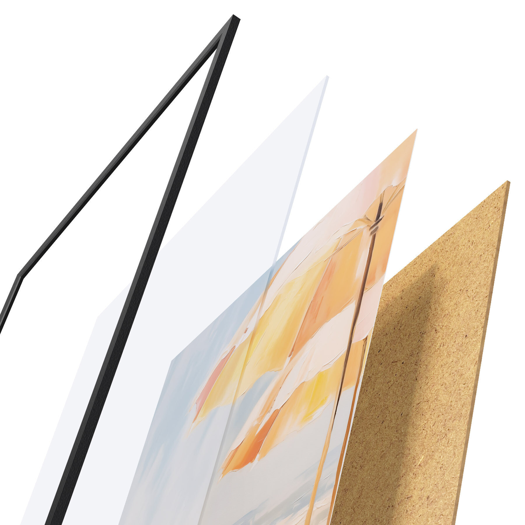 A poszter keretből, plexiből, nyomtatott képből és forgácslap hátlapból áll. A poszter a hátoldalon található rögzítőknek köszönhetően azonnal felakasztható a falra.