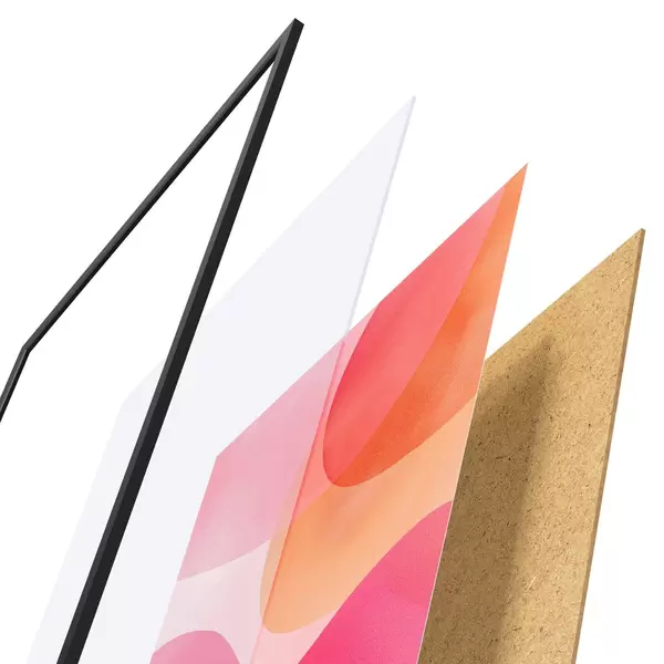 A poszter keretből, plexiből, nyomtatott képből és forgácslap hátlapból áll. A poszter a hátoldalon található rögzítőknek köszönhetően azonnal felakasztható a falra.