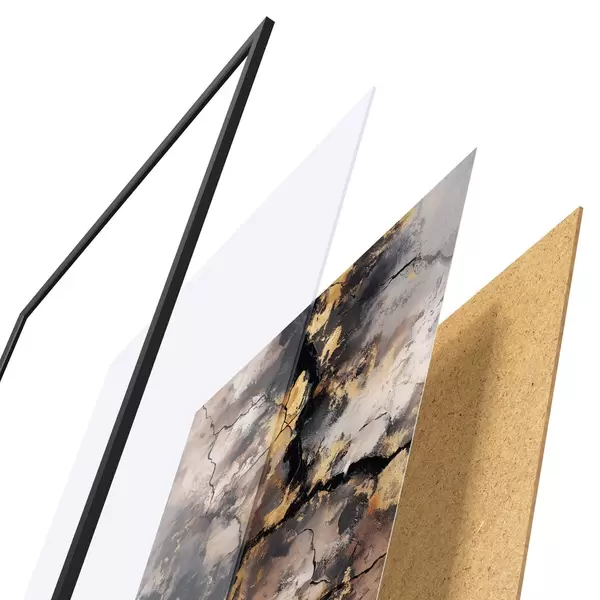 A poszter keretből, plexiből, nyomtatott képből és forgácslap hátlapból áll. A poszter a hátoldalon található rögzítőknek köszönhetően azonnal felakasztható a falra.