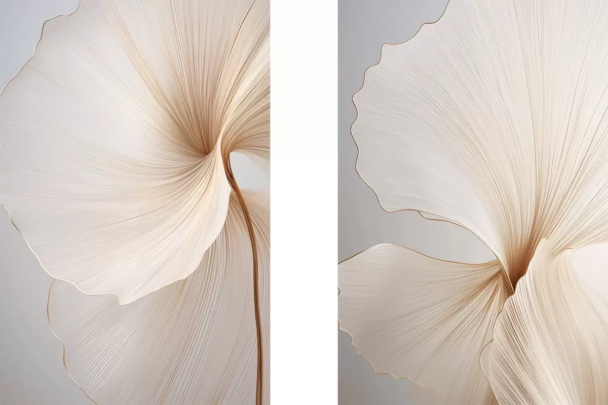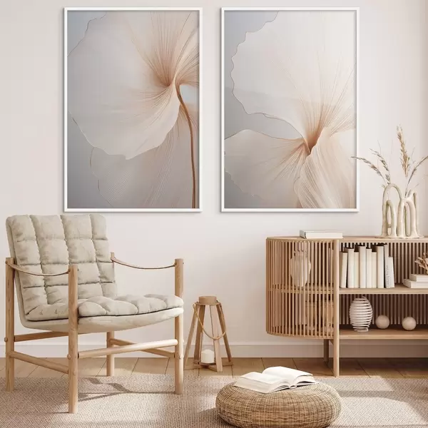 Poster Absztrakt virágok vékony, finom szirmokkal, fehér és bézs árnyalatokban Nr d00817