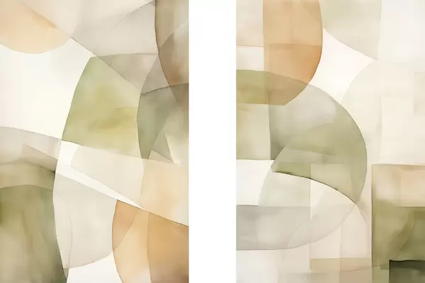 Poster Absztrakt akvarell textúrájú geometrikus formák zöld, barna és bézs árnyalatokban Nr d00820