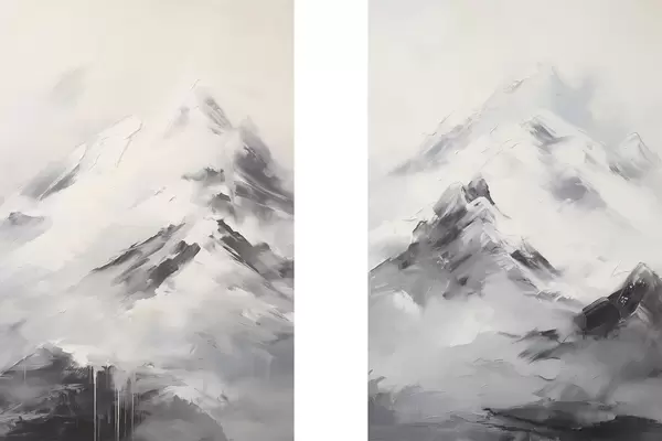 Poster Havas hegycsúcsok szürke árnyékokkal, szürke ég, ecsetvonások, texturált, minimalista Nr d00822