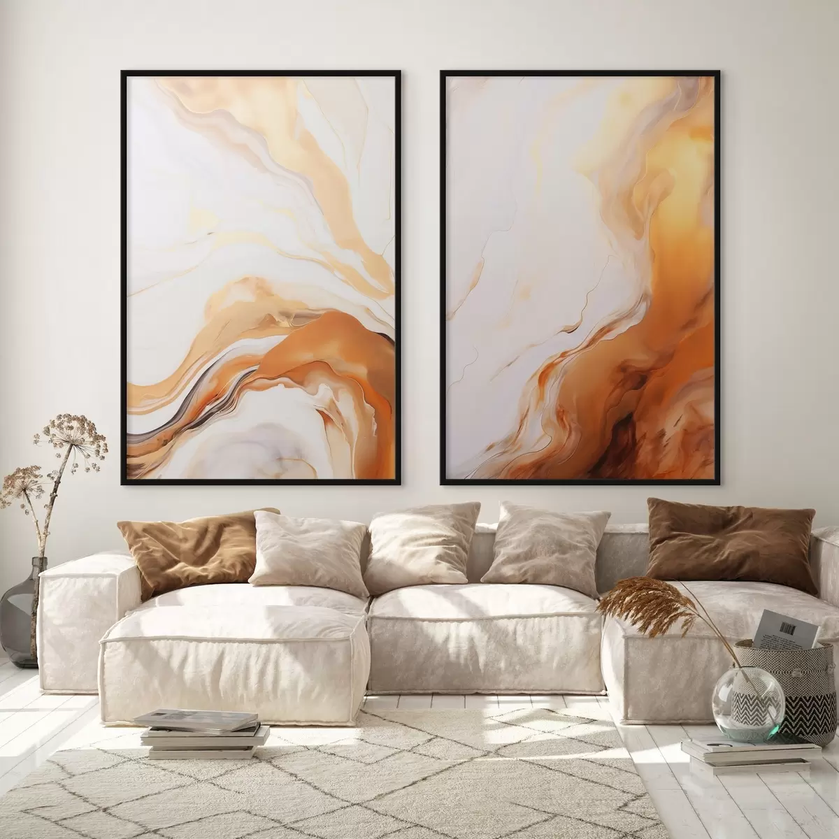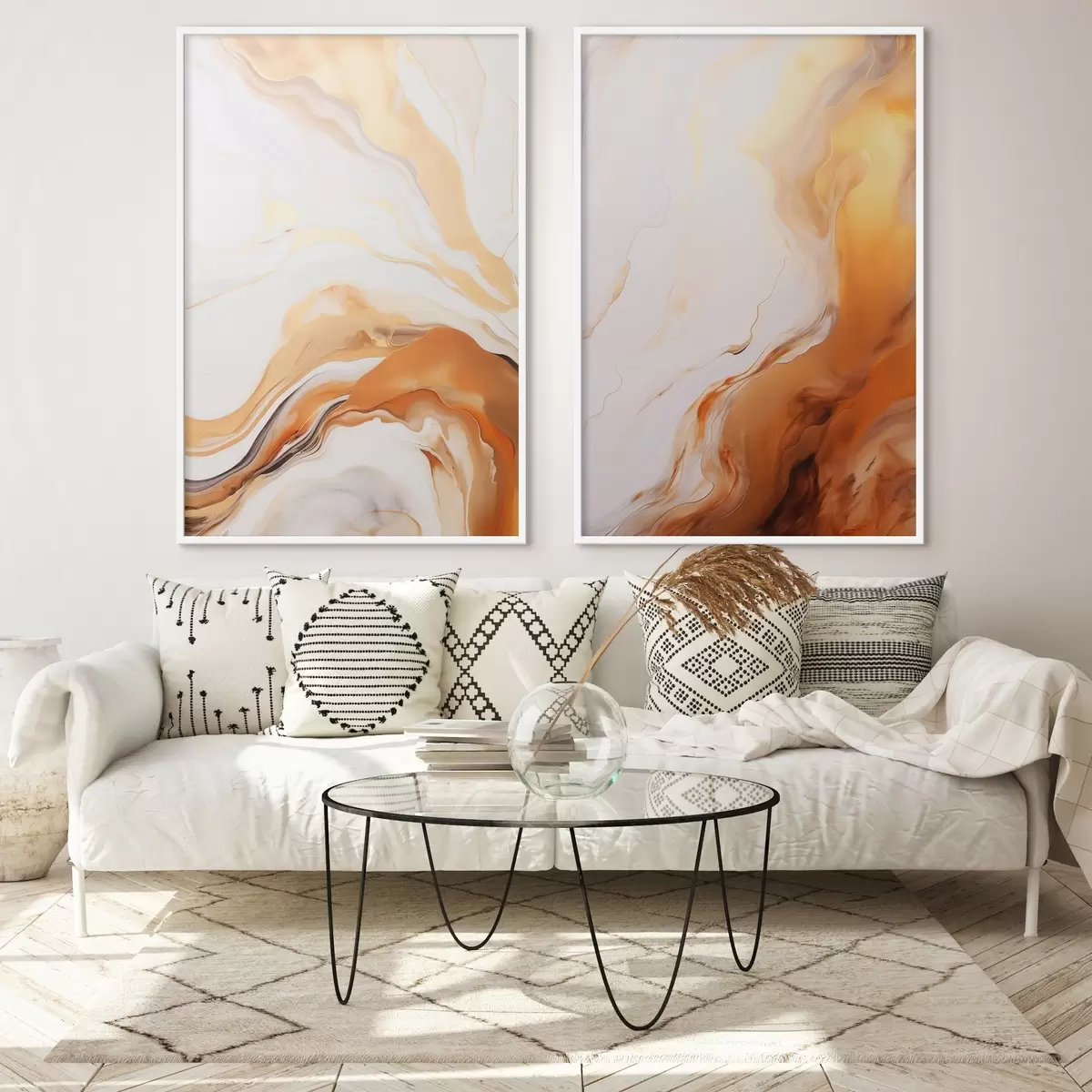 Poster Absztrakt festmény utánzat fehér és narancssárga színekkel, hullámzó vonalakkal, modern művészet Nr d00825