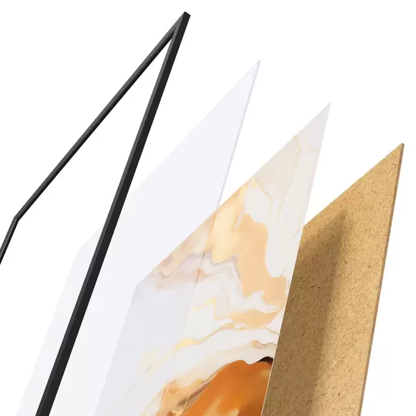 A poszter keretből, plexiből, nyomtatott képből és forgácslap hátlapból áll. A poszter a hátoldalon található rögzítőknek köszönhetően azonnal felakasztható a falra.