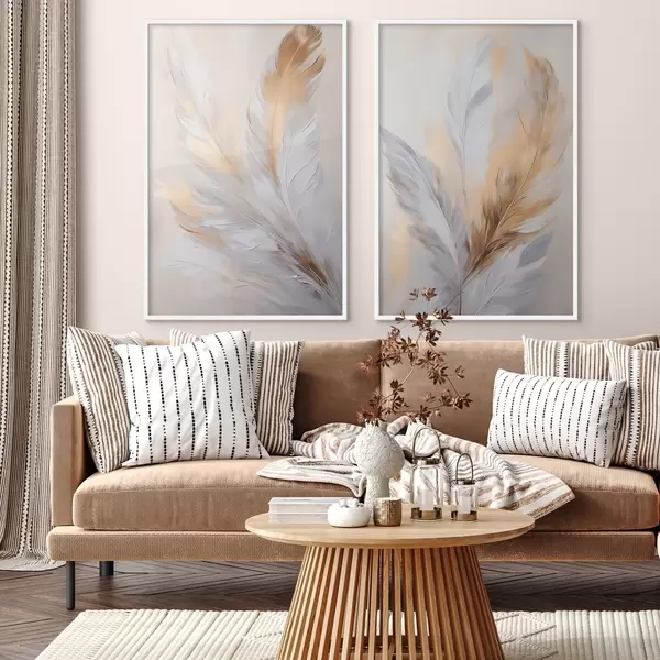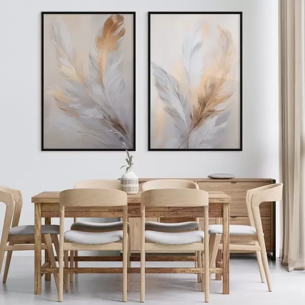 Poster Narancssárga akcentussal díszített tollak, texturált minimalista kompozíció, modern művészet Nr d00828