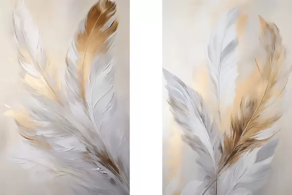 Poster Narancssárga akcentussal díszített tollak, texturált minimalista kompozíció, modern művészet Nr d00828