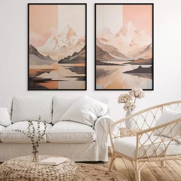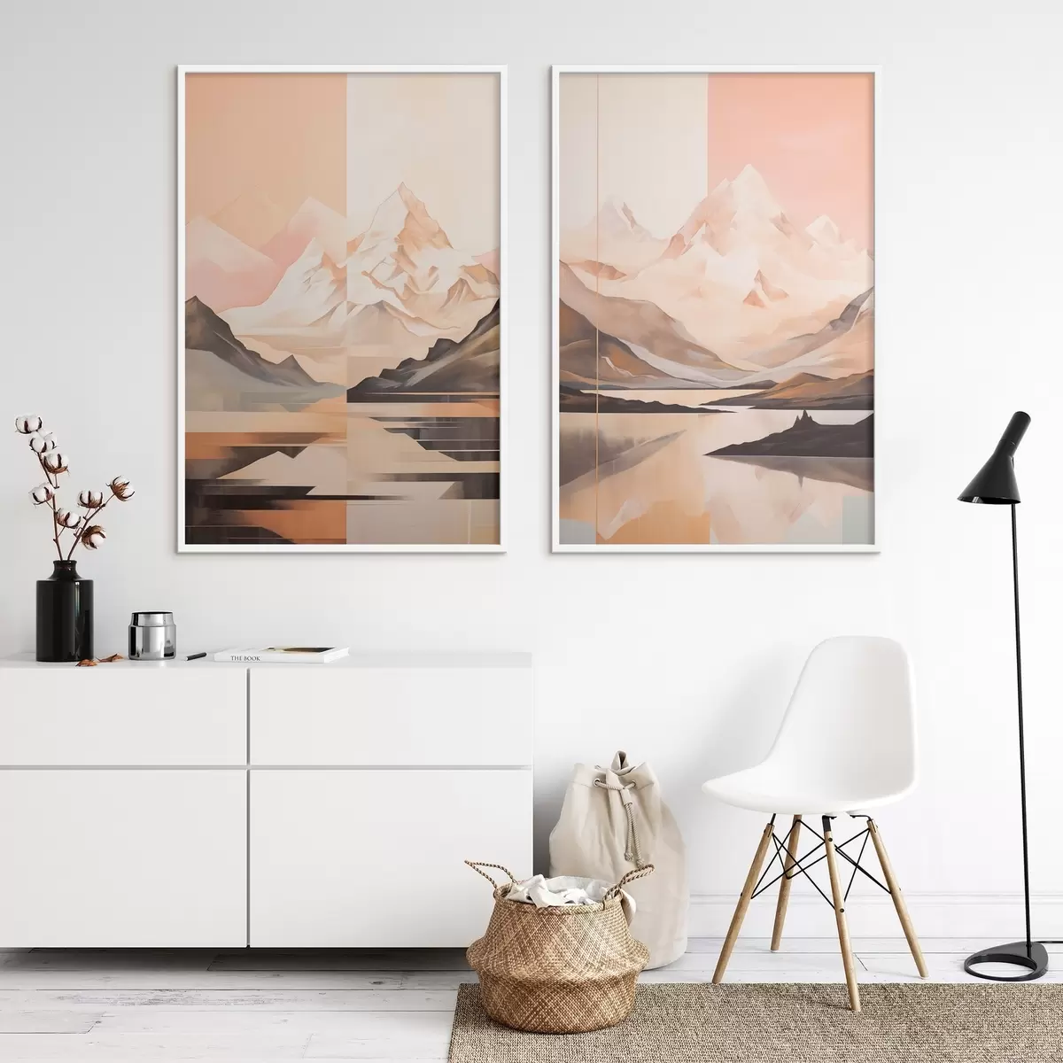 Poster Absztrakt táj hegyekkel és tóval, pasztell színekkel, minimalista stílusban Nr d00830