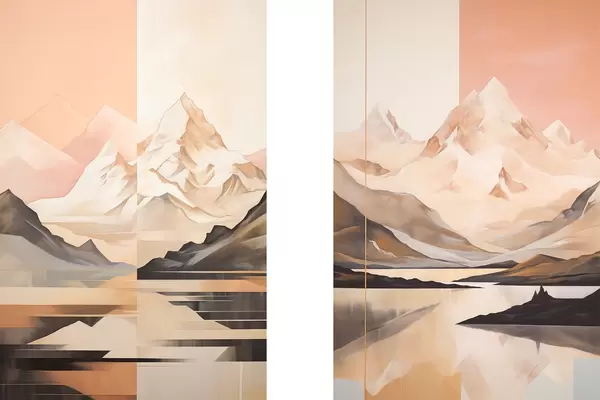 Poster Absztrakt táj hegyekkel és tóval, pasztell színekkel, minimalista stílusban Nr d00830