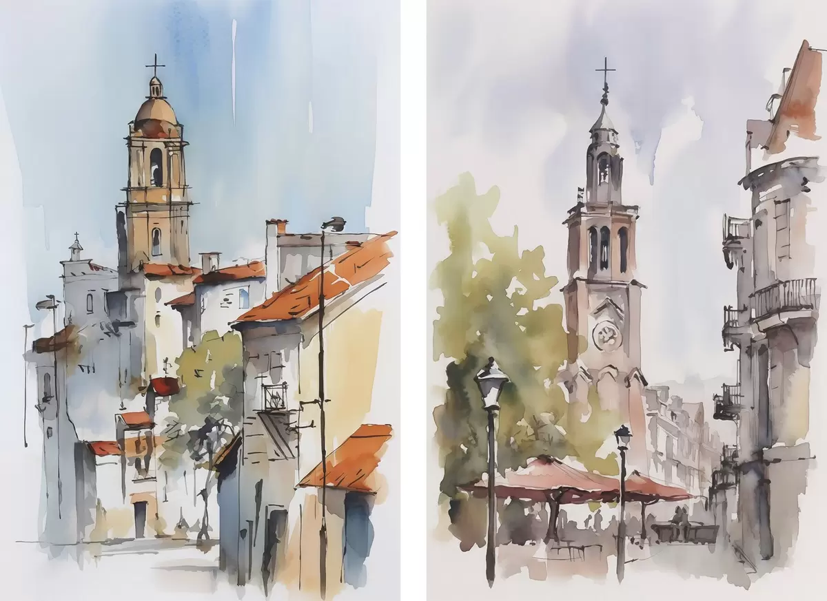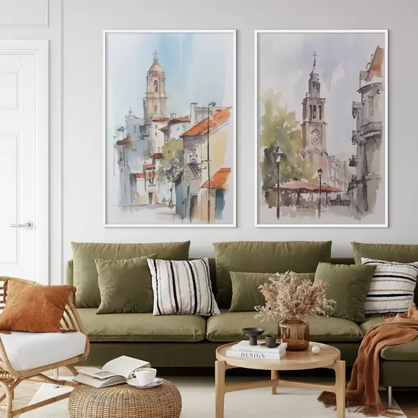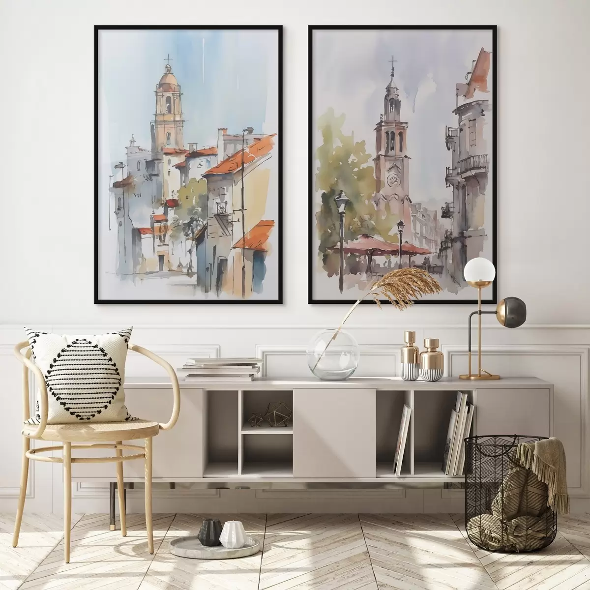 Plakát a sziklán Városi táj utánzat akvarell d00832