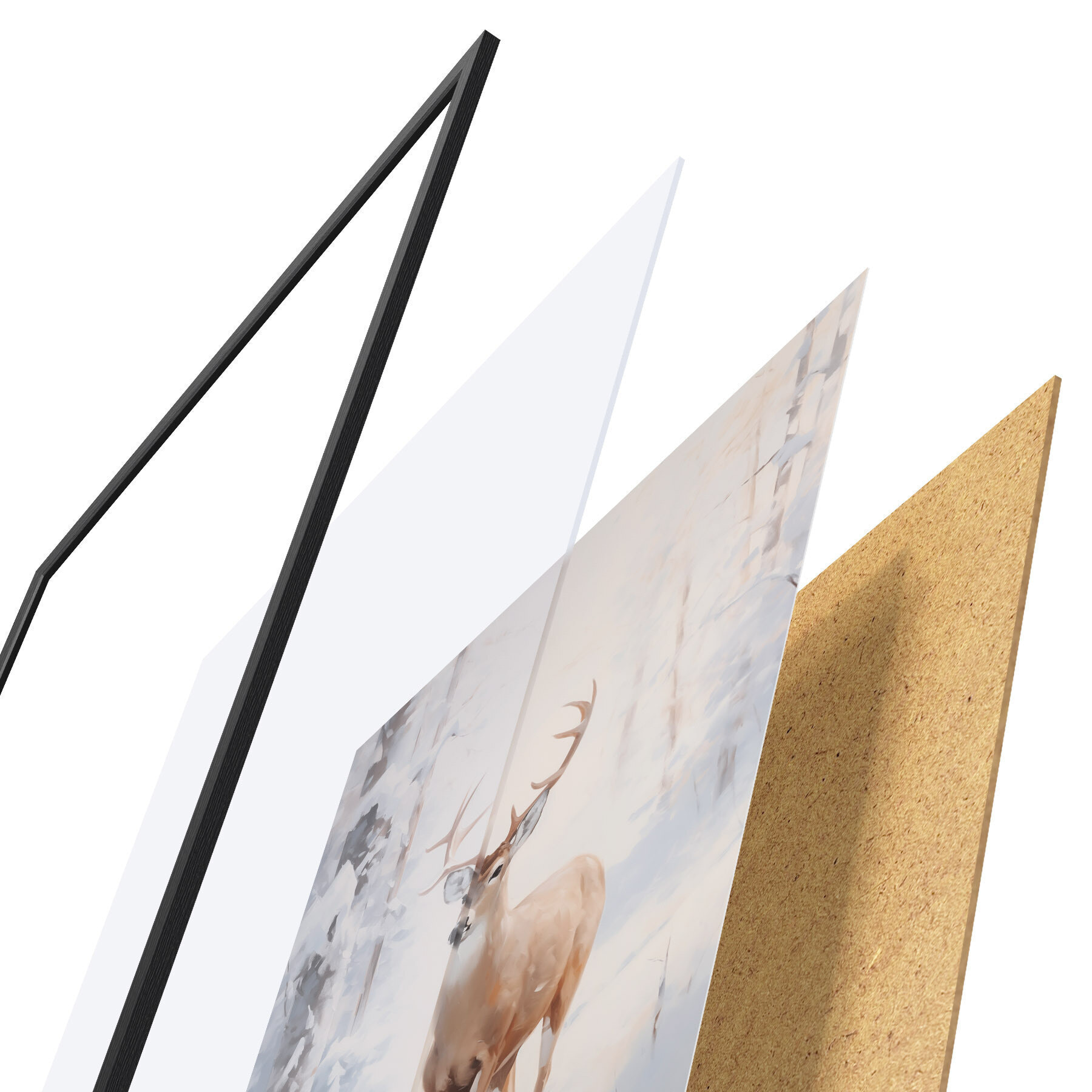 A poszter keretből, plexiből, nyomtatott képből és forgácslap hátlapból áll. A poszter a hátoldalon található rögzítőknek köszönhetően azonnal felakasztható a falra.