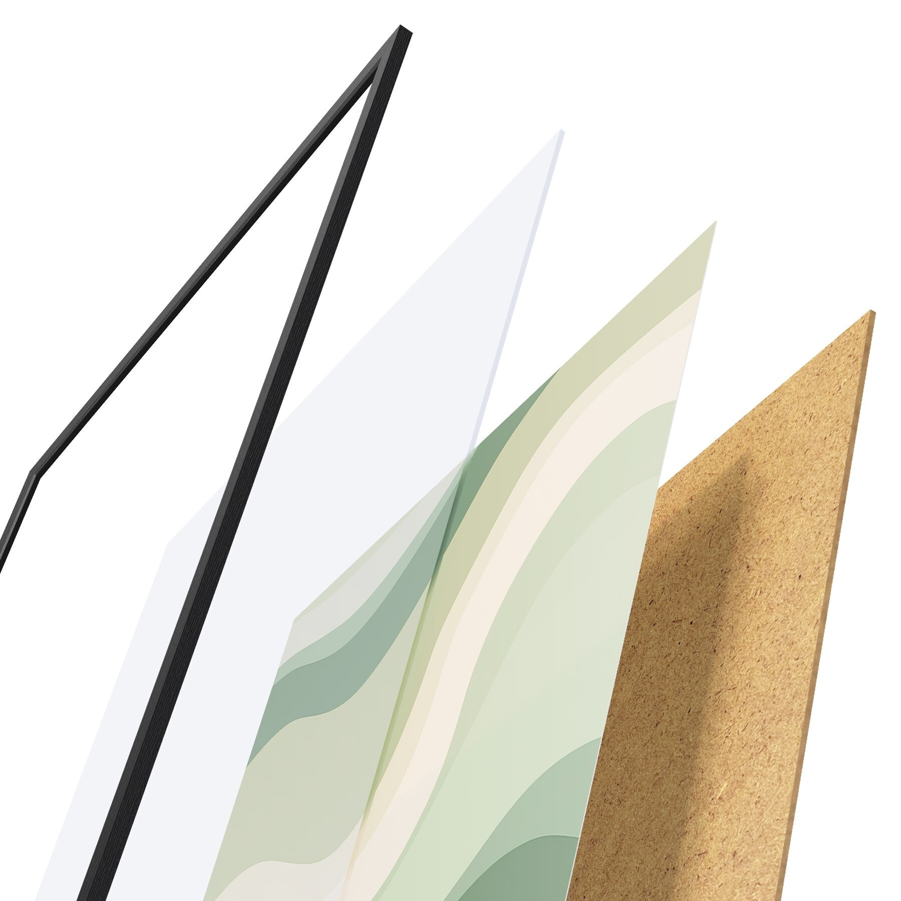 A poszter keretből, plexiből, nyomtatott képből és forgácslap hátlapból áll. A poszter a hátoldalon található rögzítőknek köszönhetően azonnal felakasztható a falra.