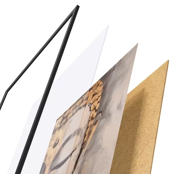 A poszter keretből, plexiből, nyomtatott képből és forgácslap hátlapból áll. A poszter a hátoldalon található rögzítőknek köszönhetően azonnal felakasztható a falra.