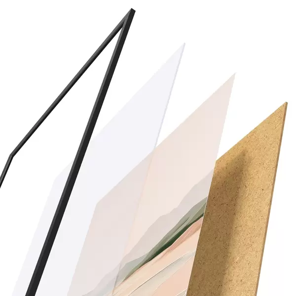 A poszter keretből, plexiből, nyomtatott képből és forgácslap hátlapból áll. A poszter a hátoldalon található rögzítőknek köszönhetően azonnal felakasztható a falra.