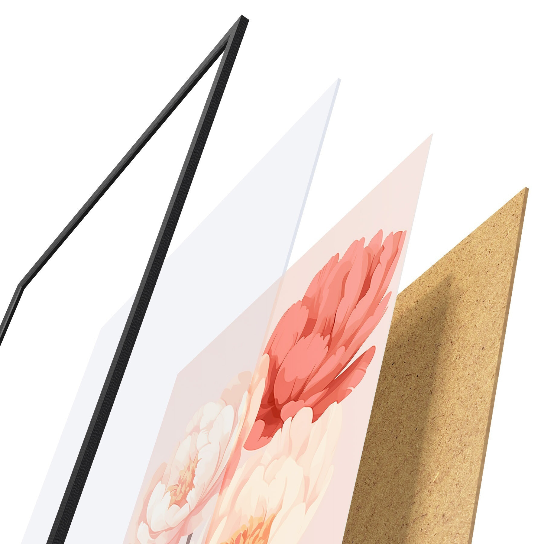 A poszter keretből, plexiből, nyomtatott képből és forgácslap hátlapból áll. A poszter a hátoldalon található rögzítőknek köszönhetően azonnal felakasztható a falra.
